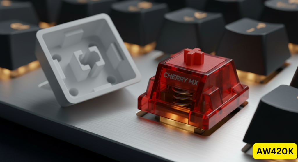 The AW420K uses genuine Cherry MX Red switches—the gold standard for linear gaming switches. Here’s what that means: