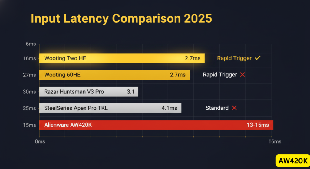 - Comparison chart: AW420K vs Wooting 60HE latency graph