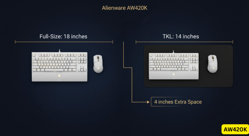 - Size comparison: TKL vs full-size keyboard desk footprint