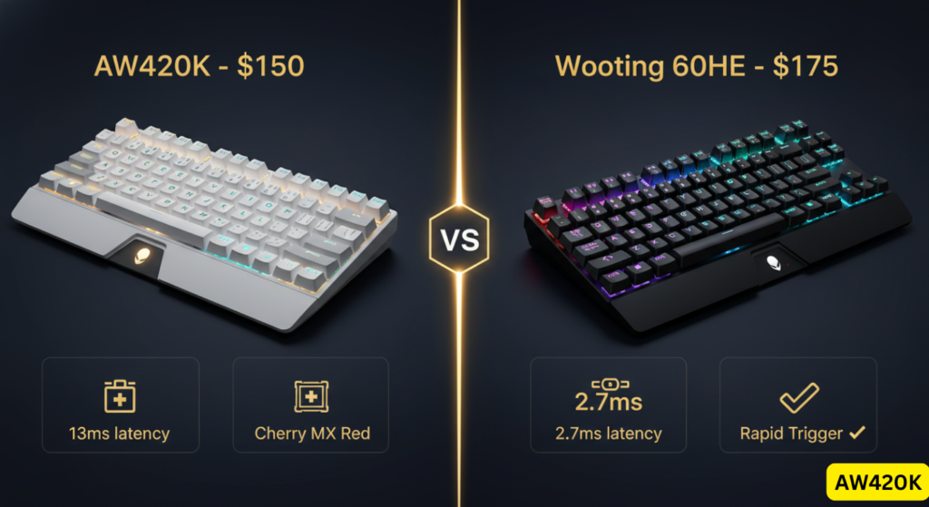 Recommendation: For most buyers, the Alienware Pro Wireless offers better value with hot-swappable switches and wireless flexibility. For competitive players, Hall Effect keyboards like the Wooting 60HE provide measurable performance advantages worth the investment.