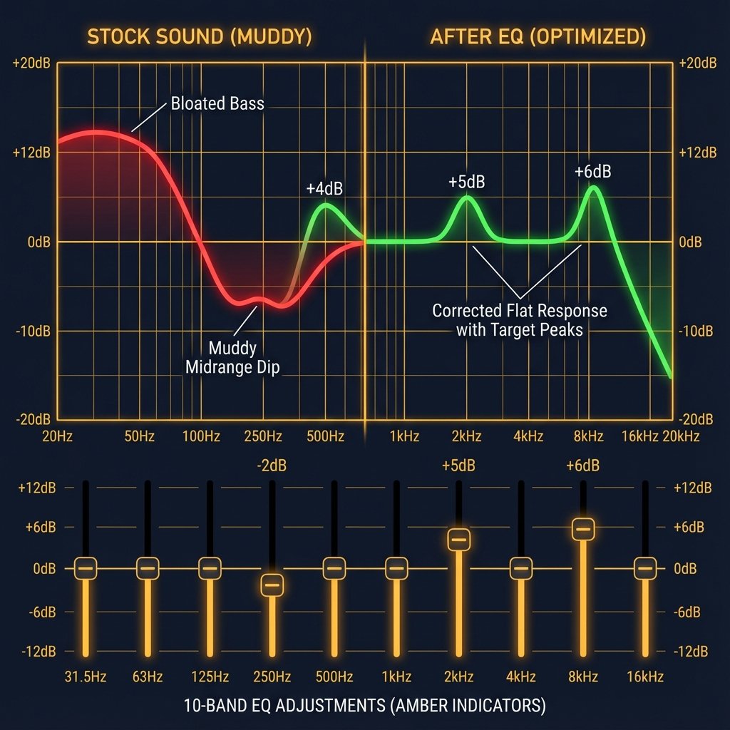 The Problem: Heavily bass-boosted with muddy midrange that buries vocals and high-frequency details.
