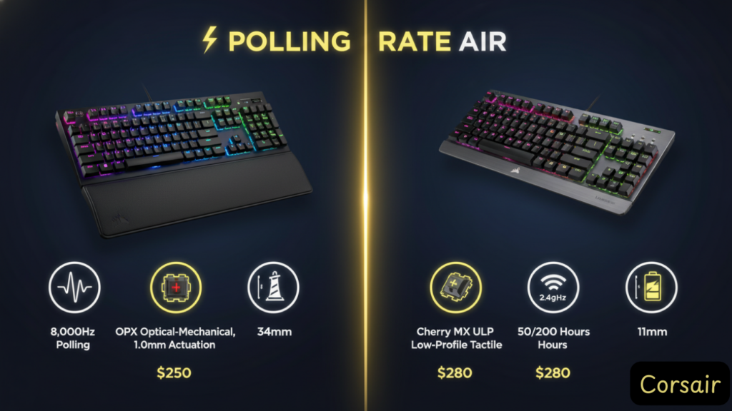 Buy K100 if: You want optical speed for FPS and already use Corsair ecosystem.