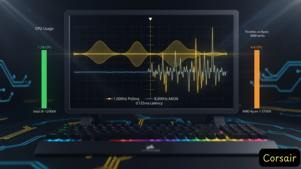 Corsair advertises “AXON hyper-processing” with 8,000Hz polling (0.125ms report rate). Let’s fact-check this.