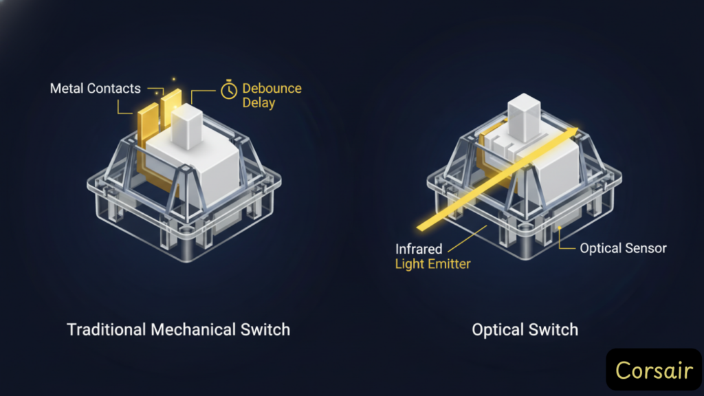The K100 RGB’s OPX switches are Corsair’s answer to traditional Cherry MX mechanicals—and they’re fundamentally different.
