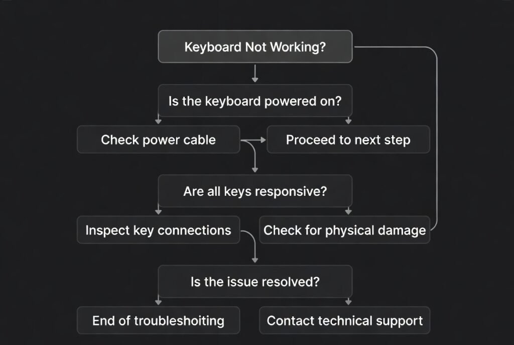 ✓ Reset keyboard – Unplug for 30 seconds, reconnect