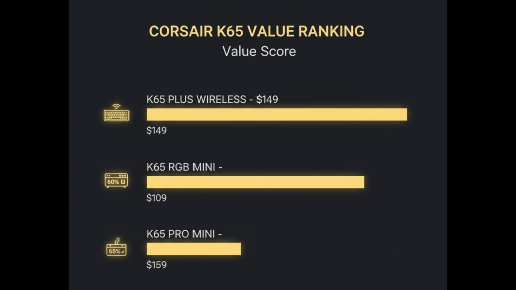 Value Analysis: At $130, it’s competitive. At $159, the K65 Plus Wireless is objectively better value.