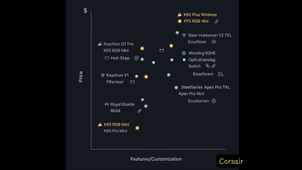 This is a common debate on Reddit. The K65 Plus offers better out-of-box experience with pre-lubed switches and premium sound dampening, plus iCUE integration if you use other Corsair gear. Keychron keyboards (especially K2 HE, Q1 Pro) offer better value, full wireless iCUE-equivalent customization via VIA/QMK, and often hot-swappable switches across the board. One Reddit user called Corsair “overpriced dogshit” compared to Keychron, while others defend it as a “pretty solid board.” Bottom line: If you’re in the Corsair ecosystem, K65 Plus makes sense. If you want maximum customization and value, Keychron is hard to beat.