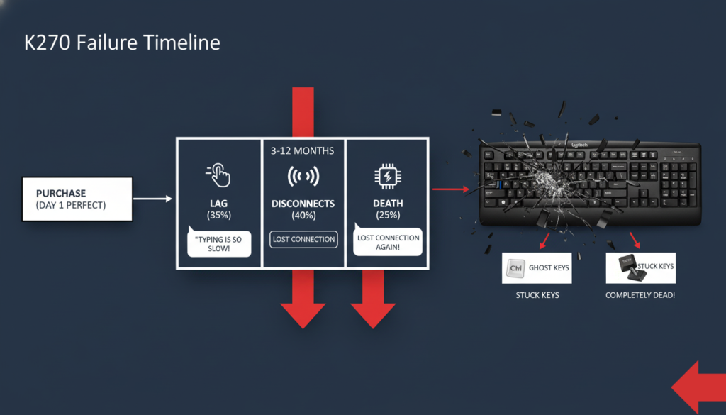 The Logitech K270 is a gamble disguised as a budget keyboard. For every user who gets 3+ years of reliable service, there’s another who experiences catastrophic failure within months. The 4.4-star rating is misleading — it’s inflated by early reviews from light users who haven’t yet hit the failure window.