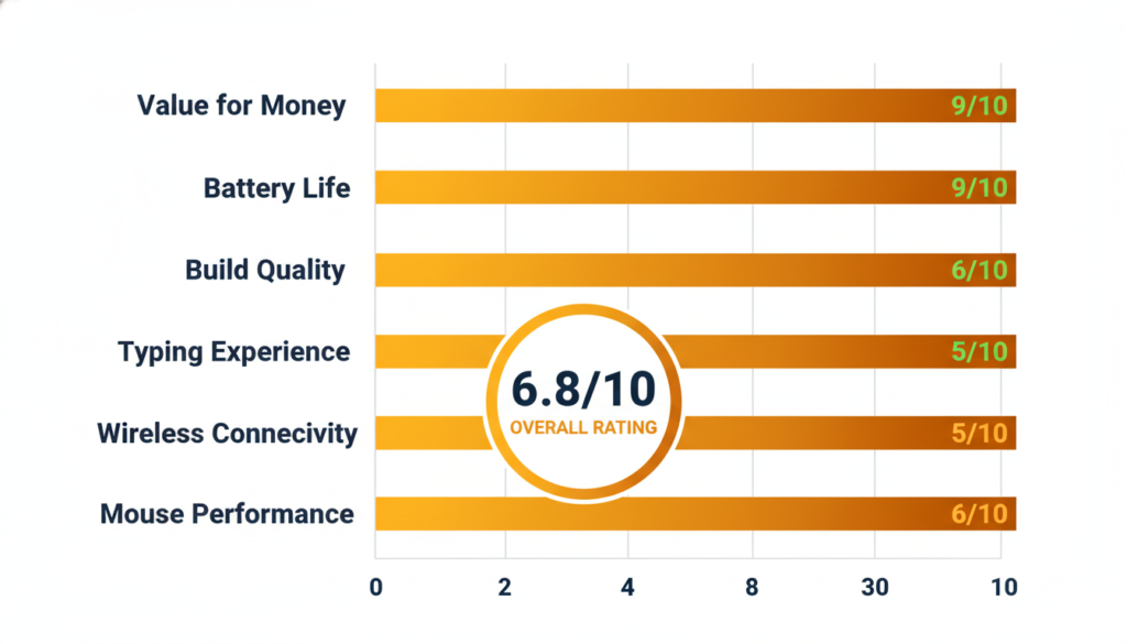 Recommended for: Budget users, basic home/office use, light typing (1-4 hours/day), students, temporary setups Not recommended for: Gaming, heavy daily typing (6+ hours), precision work (CAD/design), users valuing quality over price, crowded 2.4GHz environments