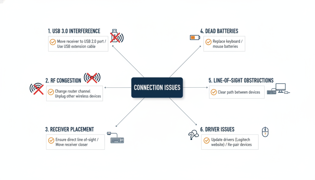 Legal Notice: Individual results may vary by manufacturing batch, region (standard vs. MK270r), and RF environment. Consult official Logitech support for definitive troubleshooting.