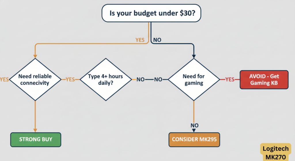 The MK270 is best used as a temporary solution, backup peripherals for a secondary computer, or basic input devices when budget is the absolute constraint.